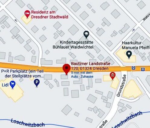 Bautzner Landstraße 120, stadtauswärts auf der rechten Straßenseite (nach LIDL)